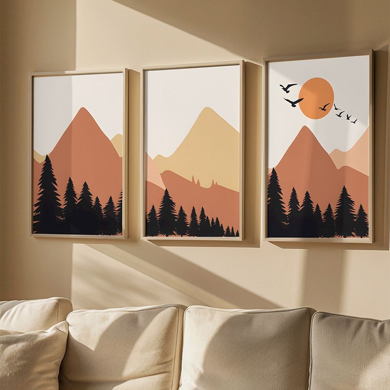 Φέρτε την ηρεμία του βουνού και του δάσους στον χώρο σας με το τρίπτυχο Elsyn.Είναι ιδανικό για να προσθέσει βάθος, χρώμα και μια αίσθηση περιπέτειας σε κάθε μοντέρνο δωμάτιο.
