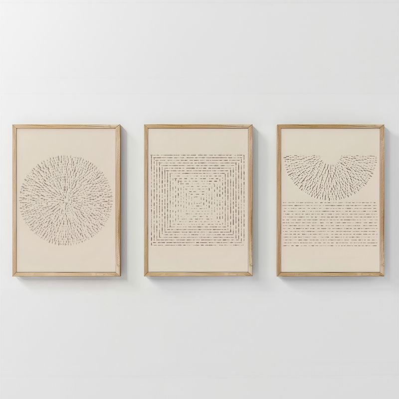 Εισάγετε στον χώρο σας την απόλυτη λιτότητα που αποπνέει ηρεμία και φινέτσα. Το τρίπτυχο Fouldy είναι εξαιρετικά minimal, με κάθε πίνακα να φέρει ένα αφηρημένο γεωμετρικό σχήμα, το οποίο είναι γεμάτο με λεπτές, επαναλαμβανόμενες κουκκίδες ή μικροσκοπικές γραμμές.