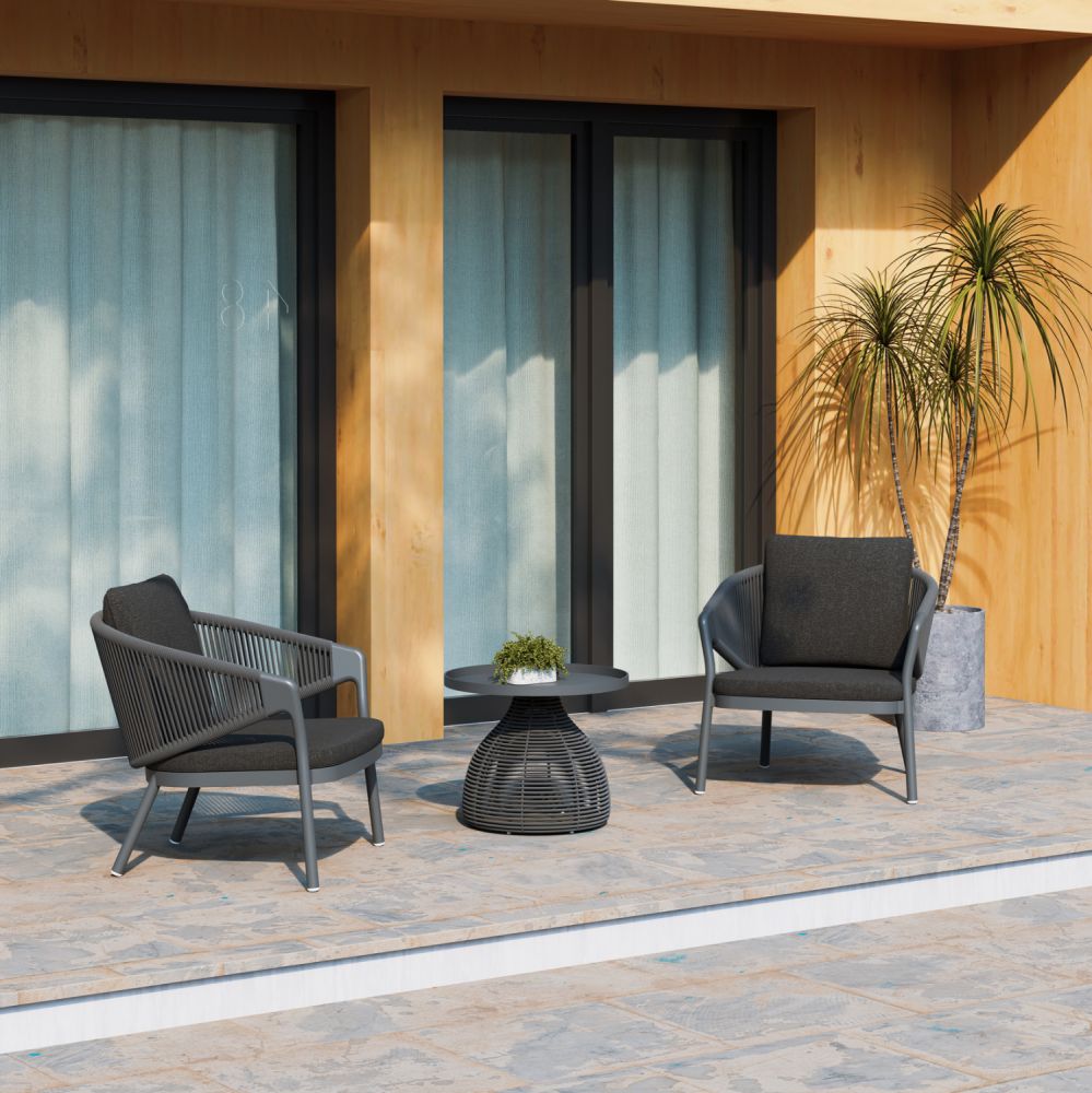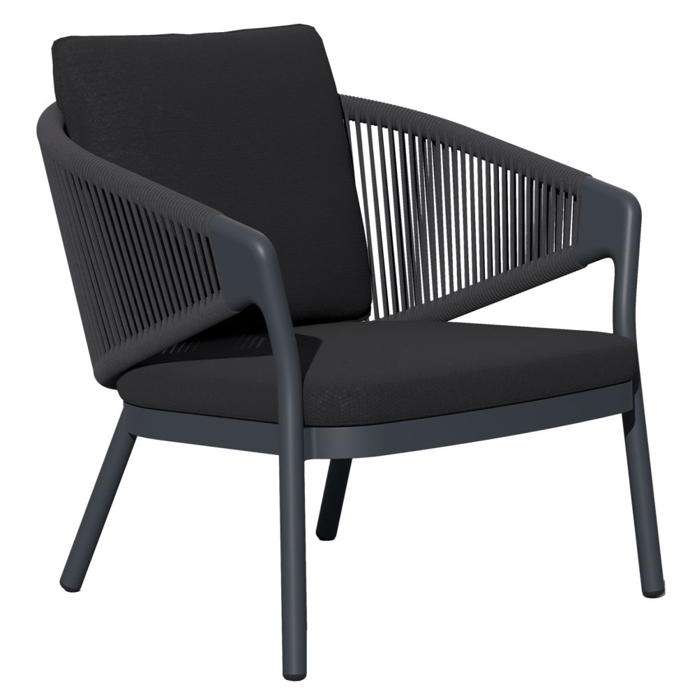 Πολυθρόνα Lounge Εξωτερικού Χώρου ΧΑΝΤΙΟΝ από Αλουμίνιο με Σχοινί & Μαξιλάρια σε ΓΚΡΙ χρώμα.