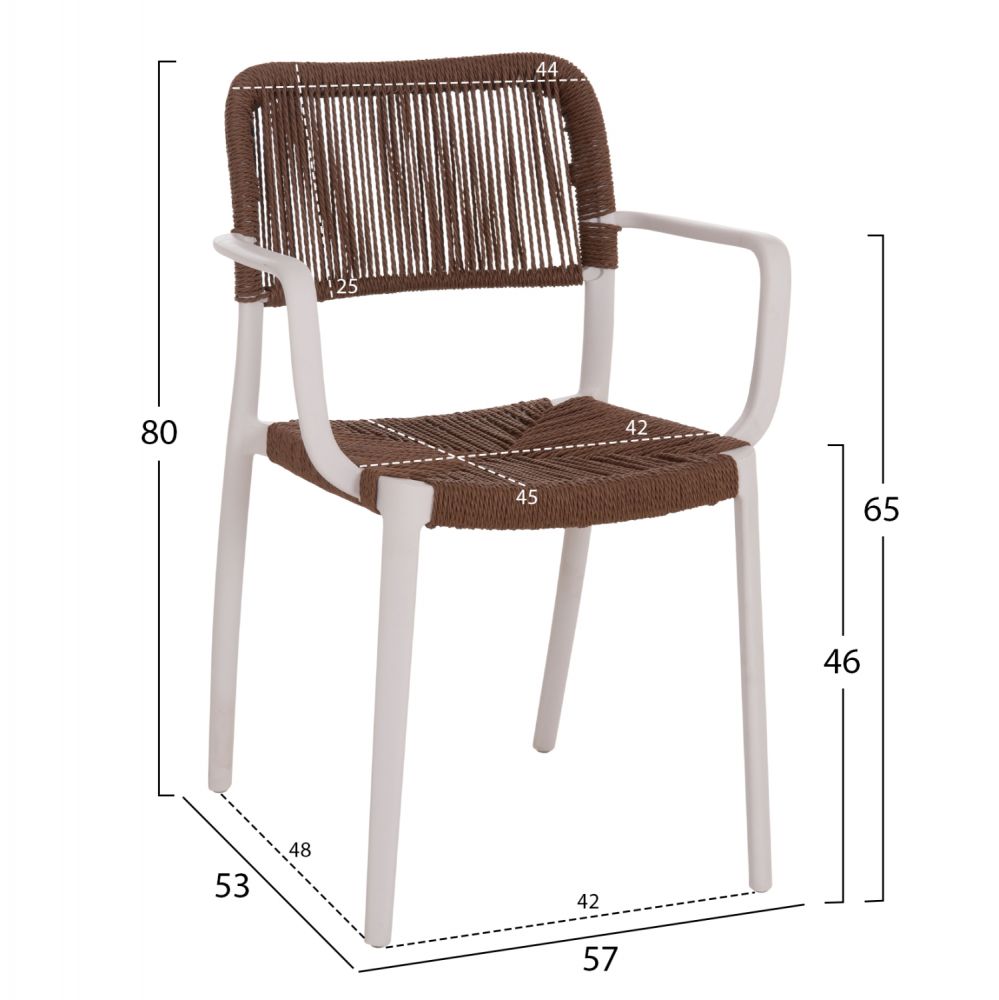 •Κάθισμα και πλάτη από συνθετικό σχοινί σε καφέ απόχρωση.