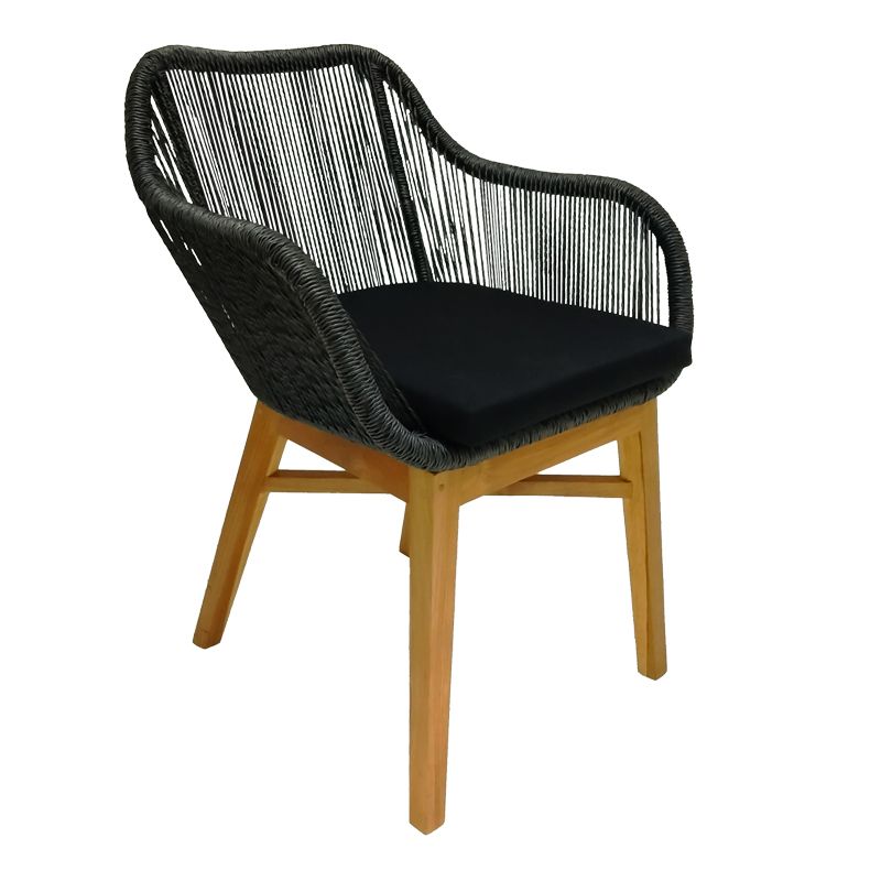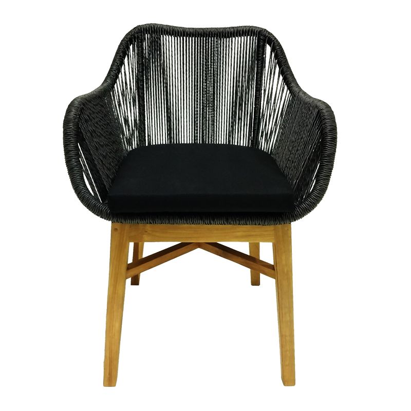 Πολυθρόνα Kalie pakoworld teak ξύλο και συνθετικό σχοινί σε φυσική-μαύρη απόχρωση με μαξιλάρι 60x61x80εκ