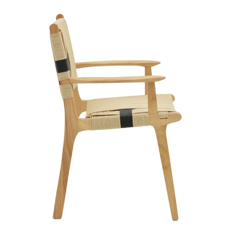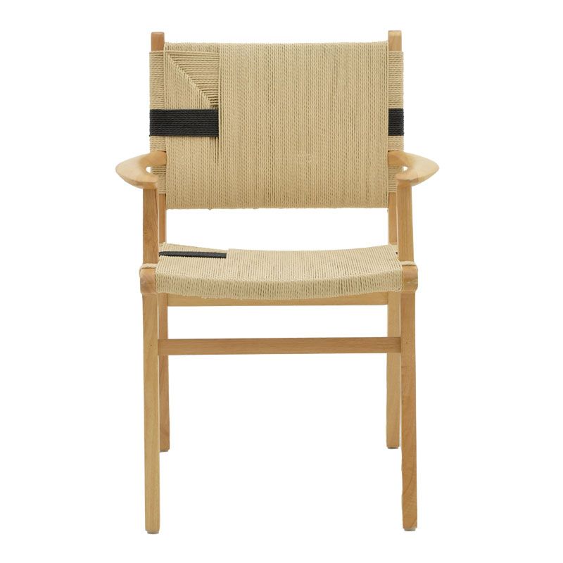 Πολυθρόνα Olivier pakoworld ξύλο οξιάς φυσικό μαύρο-έδρα φυσικό σχοινί 62x60x85εκ