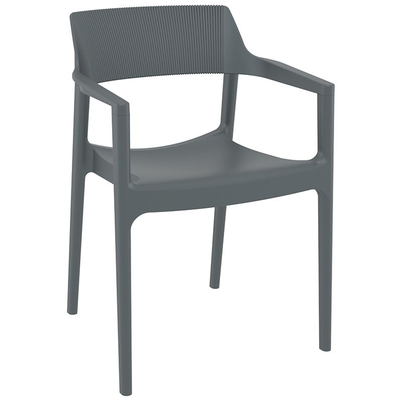 Πολυθρόνα TULUM του οίκου Siesta σε χρώμα dark grey με σχεδιασμό υψηλής αισθητικής στην πλάτη. Κατασκευασμένη από πολυπροπυλένιο με 20% fiber glass για απόλυτη αντοχή στο χρόνο. Κατάλληλη για εσωτερική και εξωτερική χρήση, στοιβαζόμενη, ιδανική επιλογή για επαγγελματικούς χώρους. Πιστοποιημένο προϊόν από τον Ιταλικό οίκο CATAS.