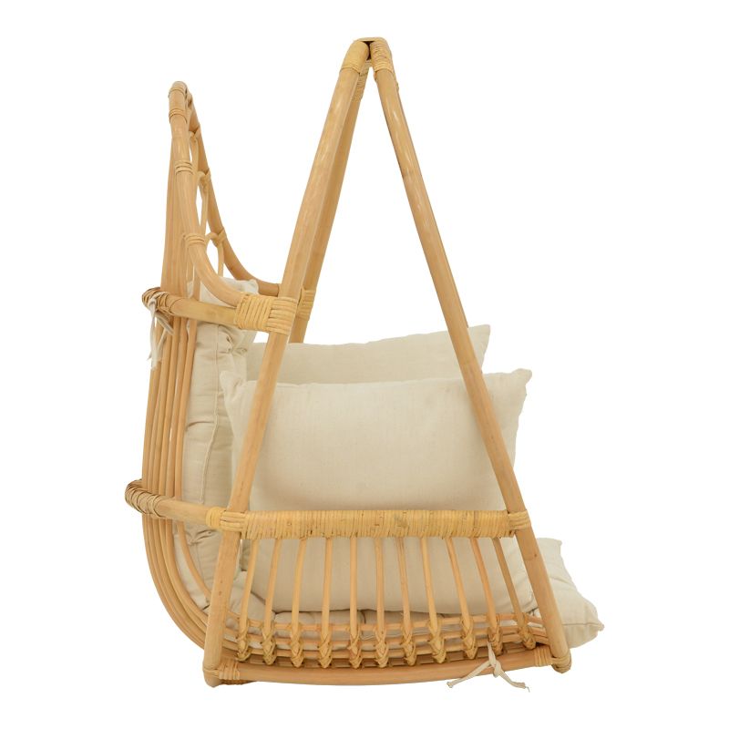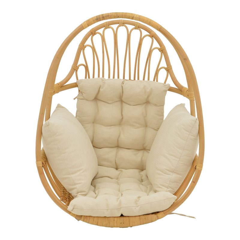 Κρεμαστή κούνια Jorg pakoworld φυσικό rattan-κρεμ μαξιλάρι 80x59x105εκ