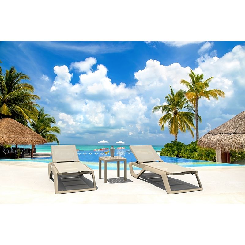 Rio Pro ξαπλώστρα του οίκου Siesta σε χρώμα taupe/taupe από υψηλής ποιότητας πολυπροπυλένιο με ενίσχυση από υαλώδεις ίνες (fiber glass) για απόλυτη αντοχή.Με αντιβακτηριδιακό ύφασμα Phifertex και προστασία UV.Είναι στοιβαζόμενη,έχει ρυθμιζόμενη πλάτη 5 θέσεων,μικρά ροδάκια στo πίσω μέρος για εύκολη μετακίνηση και αντιολισθητικά πέλματα εμπρός.Πιστοποιημένο προιόν από τον Ιταλικό οίκο CATAS.