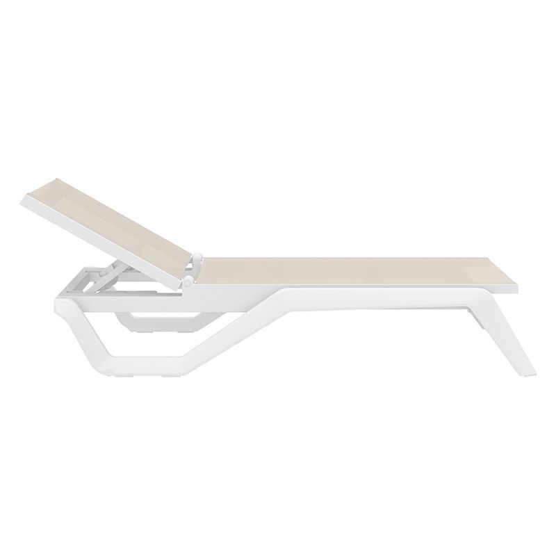 Rio Pro ξαπλώστρα του οίκου Siesta σε χρώμα white/taupe από υψηλής ποιότητας πολυπροπυλένιο με ενίσχυση από υαλώδεις ίνες (fiber glass) για απόλυτη αντοχή.Με αντιβακτηριδιακό ύφασμα Phifertex και προστασία UV.Είναι στοιβαζόμενη,έχει ρυθμιζόμενη πλάτη 5 θέσεων,μικρά ροδάκια στo πίσω μέρος για εύκολη μετακίνηση και αντιολισθητικά πέλματα εμπρός.Πιστοποιημένο προιόν από τον Ιταλικό οίκο CATAS.