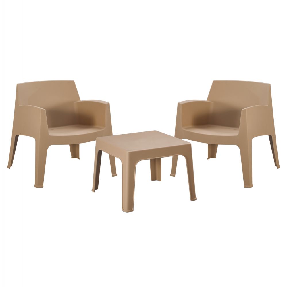 -1 τετράγωνο τραπεζάκι από χυτό πολυπροπυλένιο, όλα σε ΚΑΠΟΥΤΣΙΝΟ χρώμα.