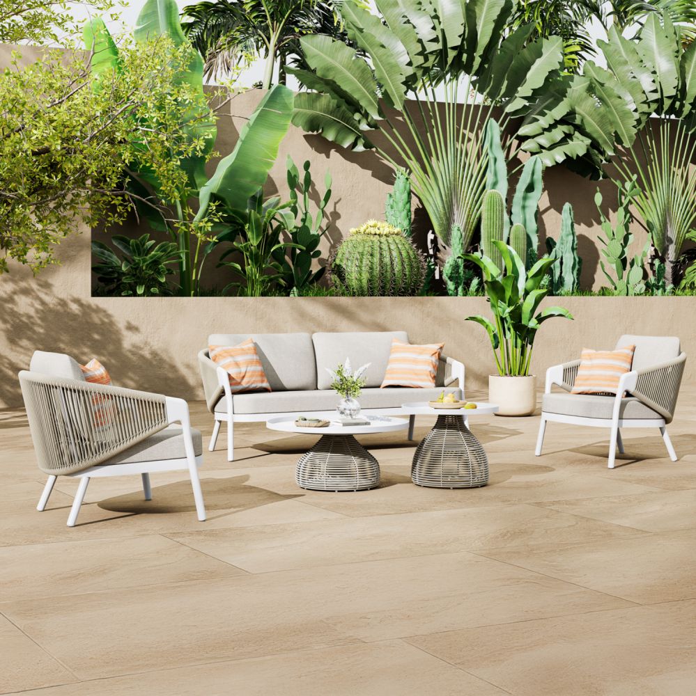 Το σετ σαλονιού εξωτερικού χώρου DRISCOLL συνδυάζει μοντέρνο design, ανθεκτικά υλικά και απόλυτη άνεση, δημιουργώντας έναν καλαίσθητο και λειτουργικό χώρο χαλάρωσης για τον κήπο, τη βεράντα ή την πισίνα.