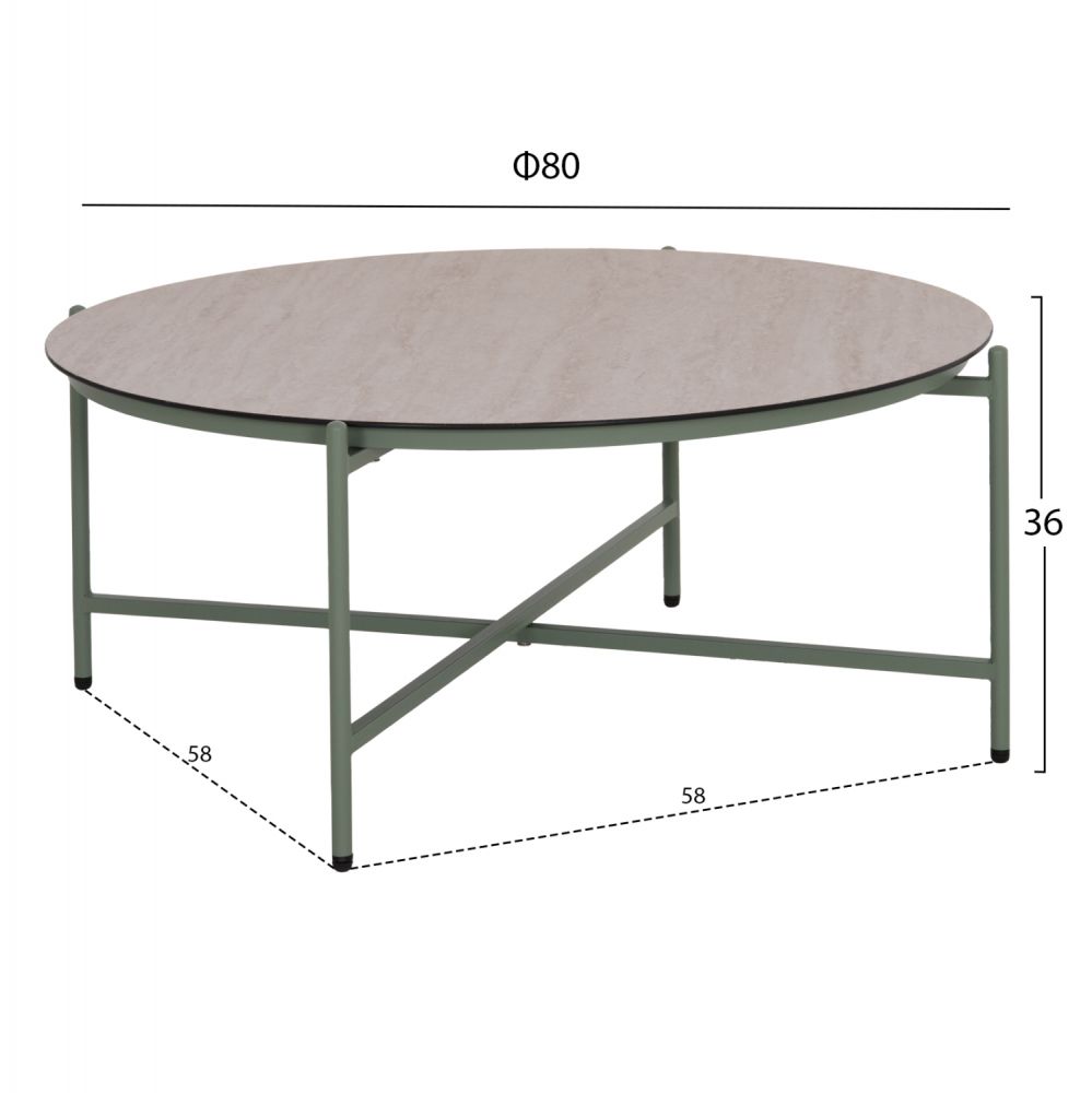 •Τραπέζι Α: Φ80 x 36Υ εκ----Απόσταση ποδιών: 58x58 εκ.