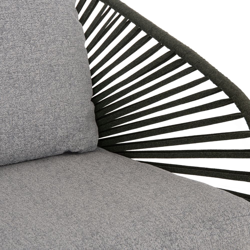 Το σετ αποτελείται από έναν 2-θέσιο καναπέ, δύο αναπαυτικές πολυθρόνες και δύο στρογγυλά τραπεζάκια διαφορετικών μεγεθών — δημιουργώντας μια αρμονική και λειτουργική σύνθεση για στιγμές χαλάρωσης και φιλοξενίας.