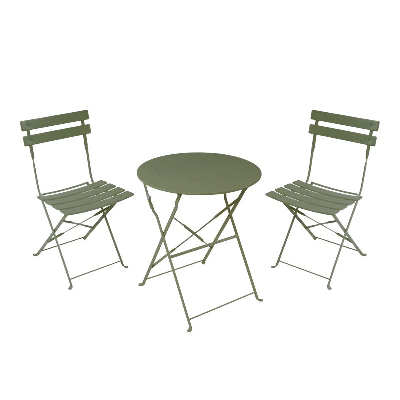 Τραπεζαρία Bistro pakoworld σετ 3τεμ μεταλλική αναδιπλούμενη σε λαδί απόχρωση Φ60x71εκ