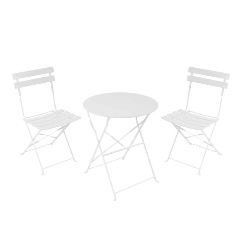 Τραπεζαρία Bistro pakoworld σετ 3τεμ μεταλλική αναδιπλούμενη σε λευκή απόχρωση Φ60x71εκ