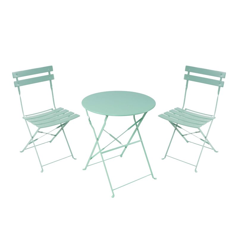 Τραπεζαρία Bistro pakoworld σετ 3τεμ μεταλλική αναδιπλούμενη σε μέντα απόχρωση Φ60x71εκ