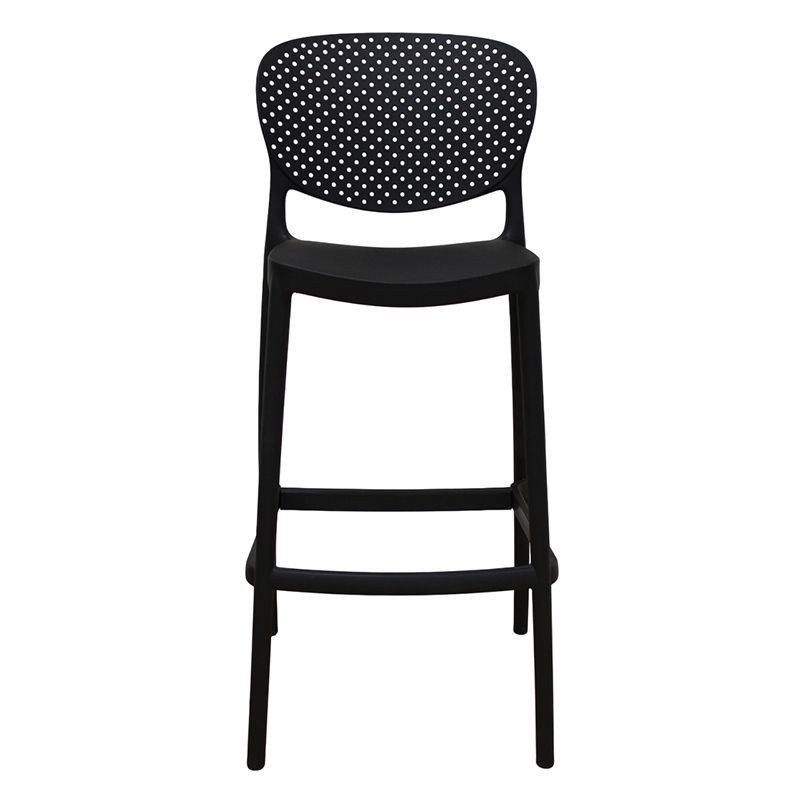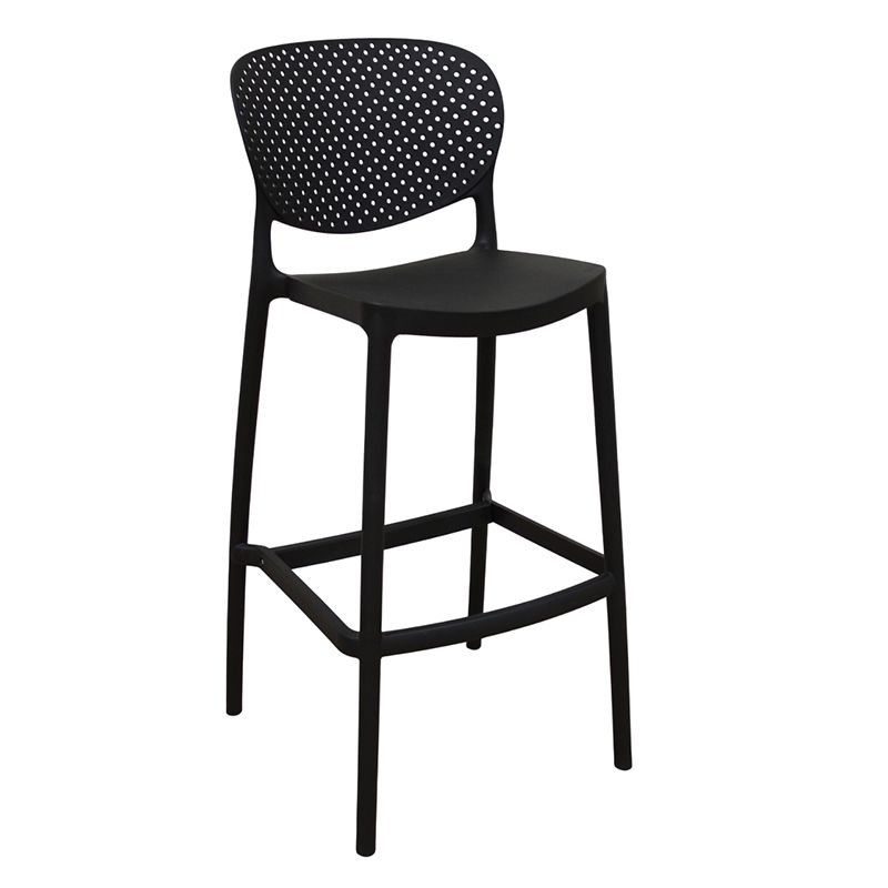 JOY σκαμπό μπάρ σε χρώμα black κατασκευασμένο από πολυπροπυλένιο. Με ιδιαίτερο design στην πλάτη και το κάθισμα.Είναι στοιβαζόμενο για εξοικονόμηση χώρου και εύκολη αποθήκευση.Κατάλληλο για εσωτερική και εξωτερική χρήση.
