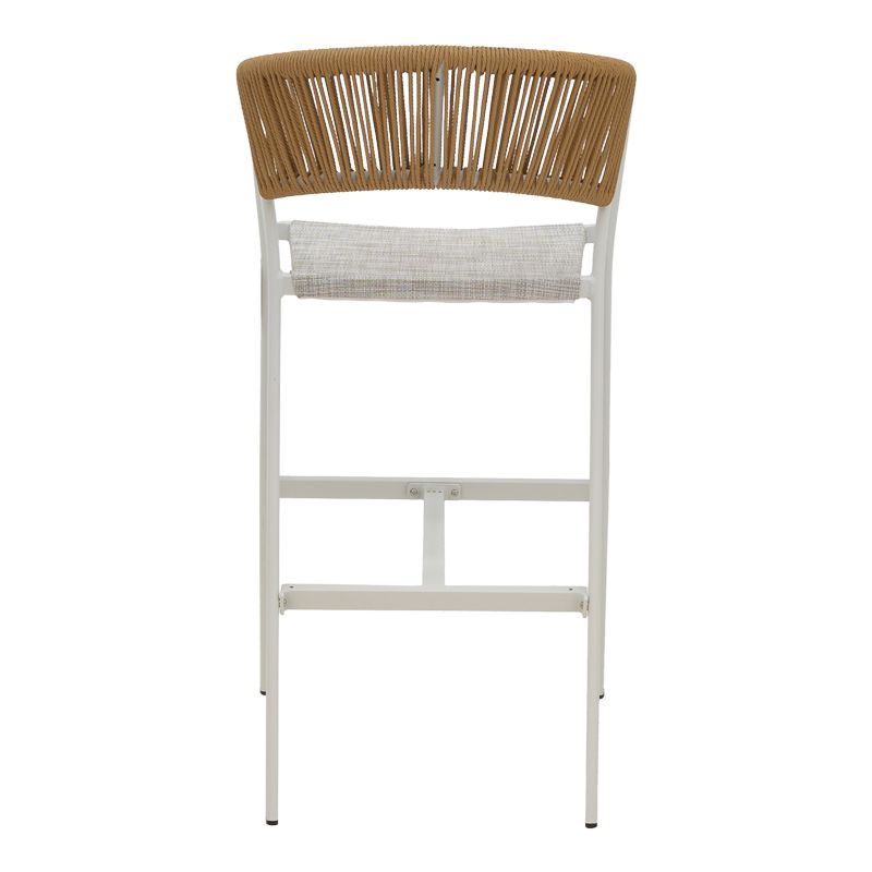 Σκαμπό μπαρ αλουμινίου Phoenix pakoworld στοιβαζόμενo λευκός σκελετός-textilene φυσικό rattan 53x58x103εκ