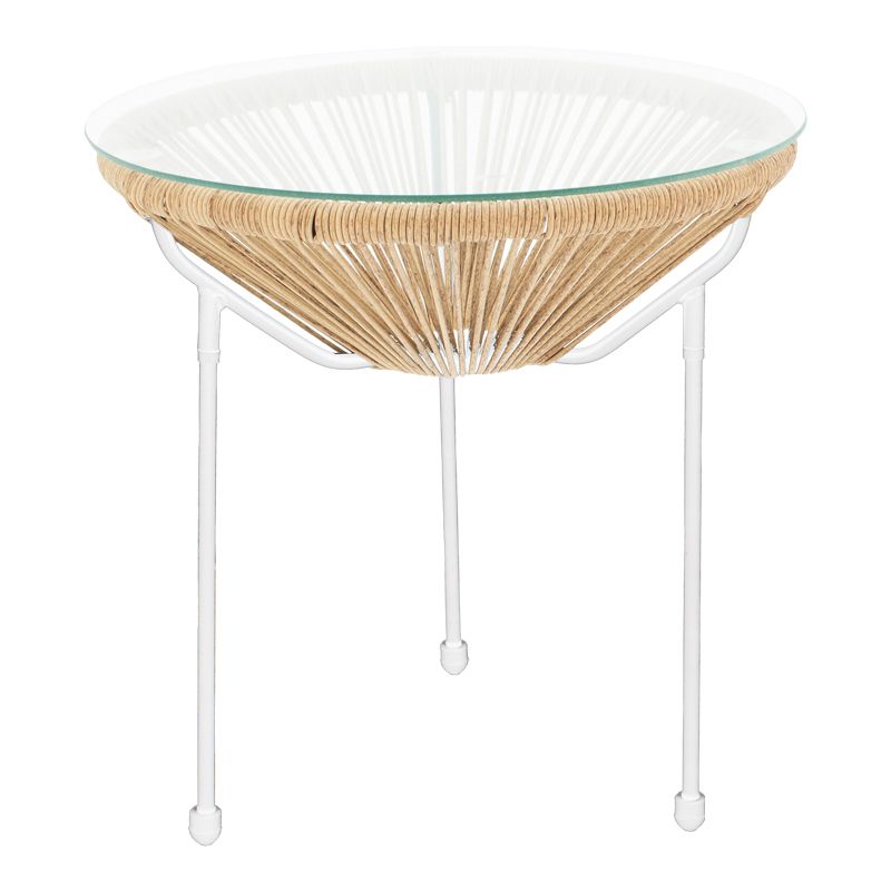 Τραπέζι Acapulco pakoworld μεταλλο σε λευκή-pe rattan σε φυσική απόχρωση Φ50x52εκ