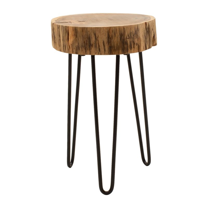 Βοηθητικό τραπέζι Tripp pakoworld μασίφ ξύλο ακακίας σε φυσική απόχρωση με μαυρα μεταλλικά πόδια 32x30x47εκ