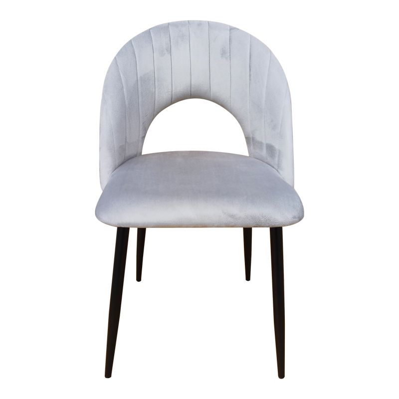Καρέκλα Lovingo pakoworld βελούδο γκρι με μαύρα μεταλλικά πόδια 50x47x85.5εκ