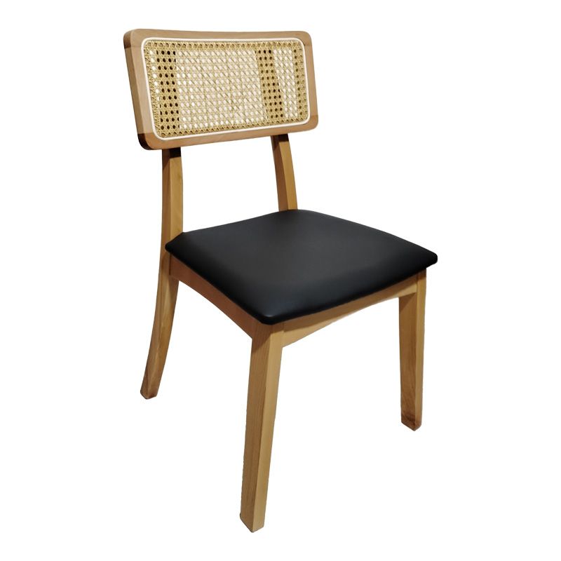 Καρέκλα Renna pakoworld ξύλο οξιάς σε φυσική απόχρωση με μαύρο pu μαξιλάρι 48x52x79εκ