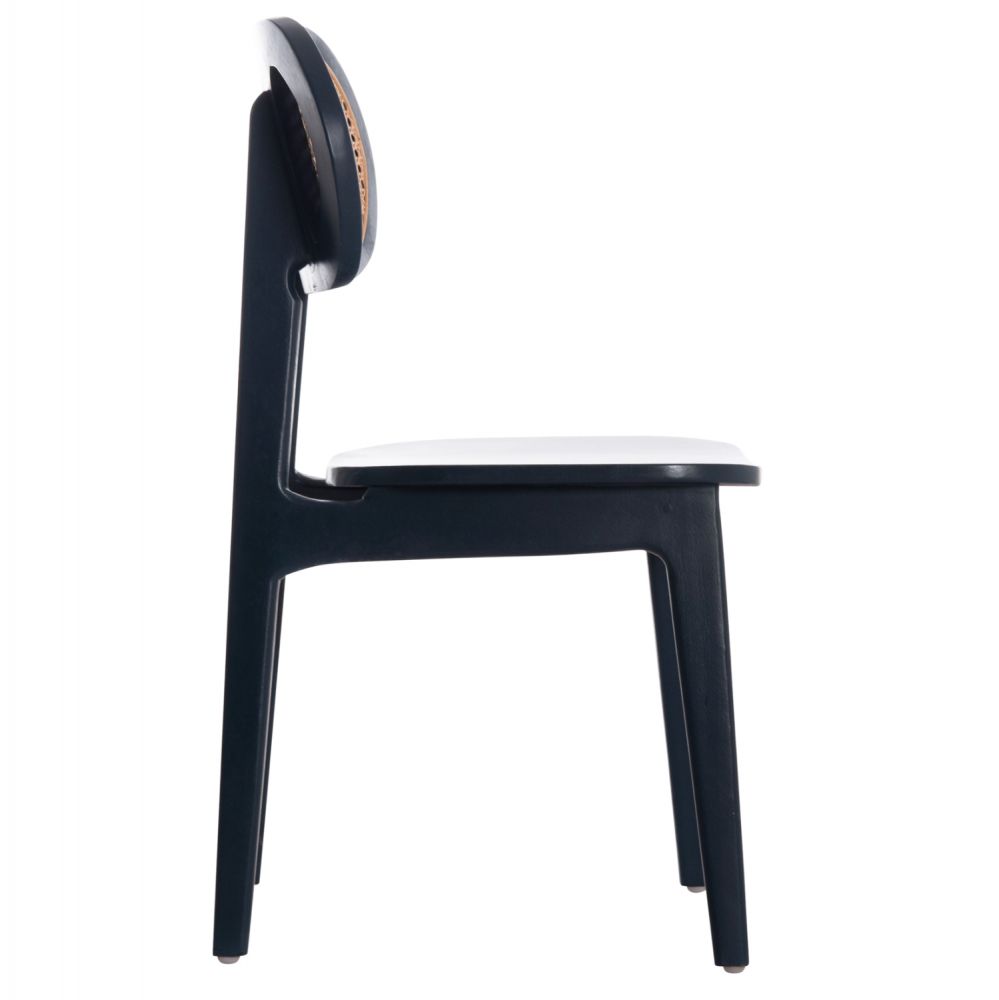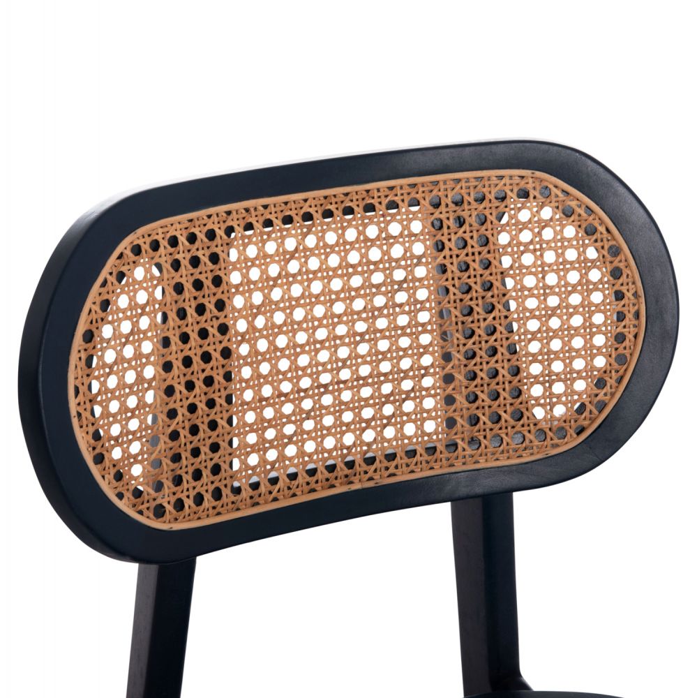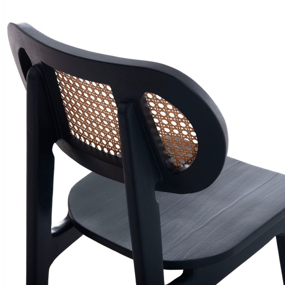 Η καρέκλα τραπεζαρίας SEBΒΟ έχει σκελετό με οβάλ πλάτη ανεξάρτητη από το κάθισμα. Η πλάτη έχει γίνει με «τρυπητό» συνθετικό Rattan σε ΦΥΣΙΚΟ χρώμα. Το ξύλο έχει επιβλητικό ΜΑΥΡΟ χρώμα.