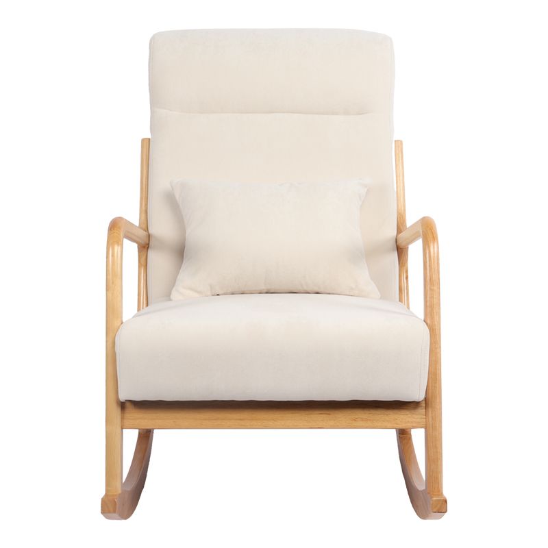 Κουνιστή πολυθρόνα Edeldy pakoworld κρεμ ύφασμα με πόδι σε φυσική απόχρωση 102x66x99εκ