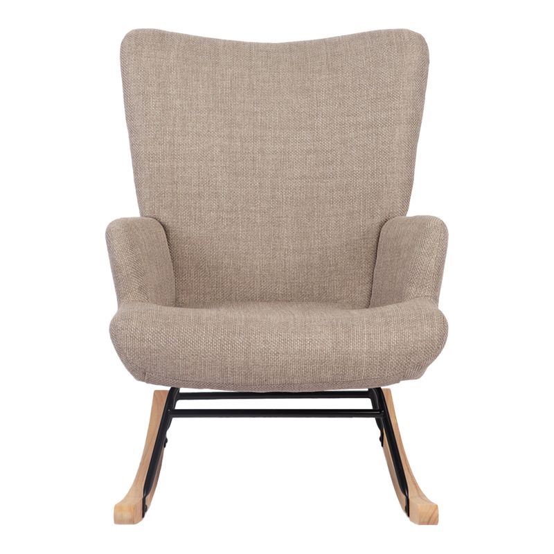 Κουνιστή πολυθρόνα Jianna pakoworld γκρι-μπεζ ύφασμα με πόδι σε φυσική απόχρωση 79x64x89εκ
