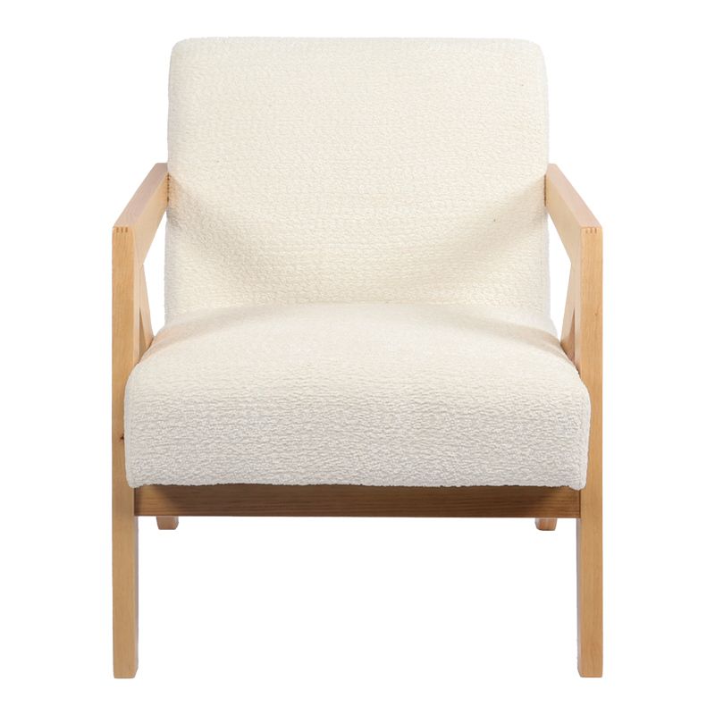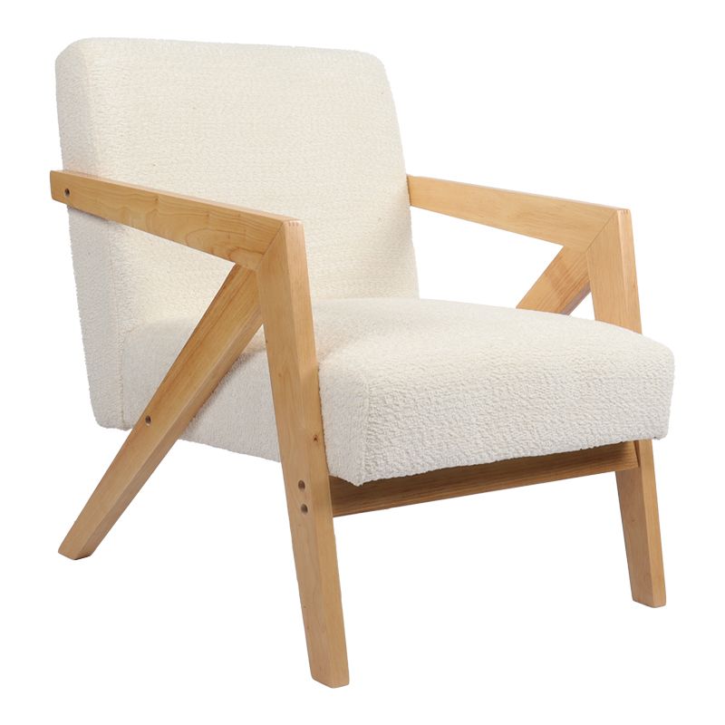 Πολυθρόνα Garifa pakoworld λευκό ύφασμα με πόδι σε φυσική απόχρωση 79x75x75εκ