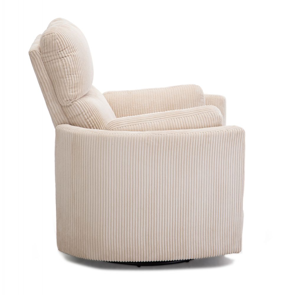 Η πολυθρόνα VELMORA έχει σχεδιαστεί για να προσφέρει απόλυτη άνεση στη μαμά και αίσθηση ηρεμίας στο βρέφος. Η επένδυση από ΜΠΕΖ κοτλέ ύφασμα (με ριγέ υφή) δημιουργεί μια ζεστή και χουχουλιάρικη εμπειρία, ιδανική για πολύωρο θηλασμό αλλά και στιγμές ξεκούρασης.