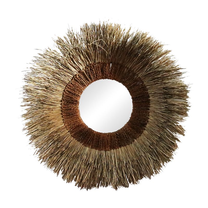 Καθρέπτης Bigile Inart pandanus σε φυσικό χρώμα Φ130x7εκ