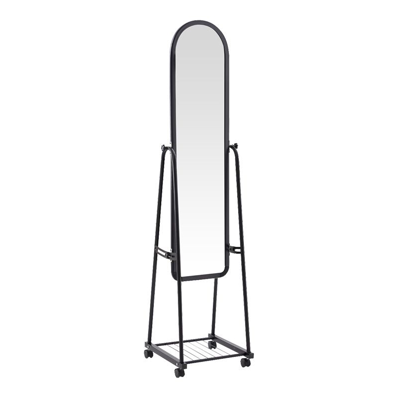 Καθρέπτης τροχήλατος Lomna pakoworld pp-μεταλλικός με ράφι σε μαύρη απόχρωση 38.5x37.5x160εκ