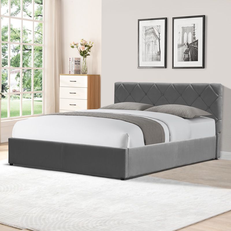 Κρεβάτι Dreamie pakoworld με αποθηκευτικό χώρο βελούδο ανθρακί 160x200εκ