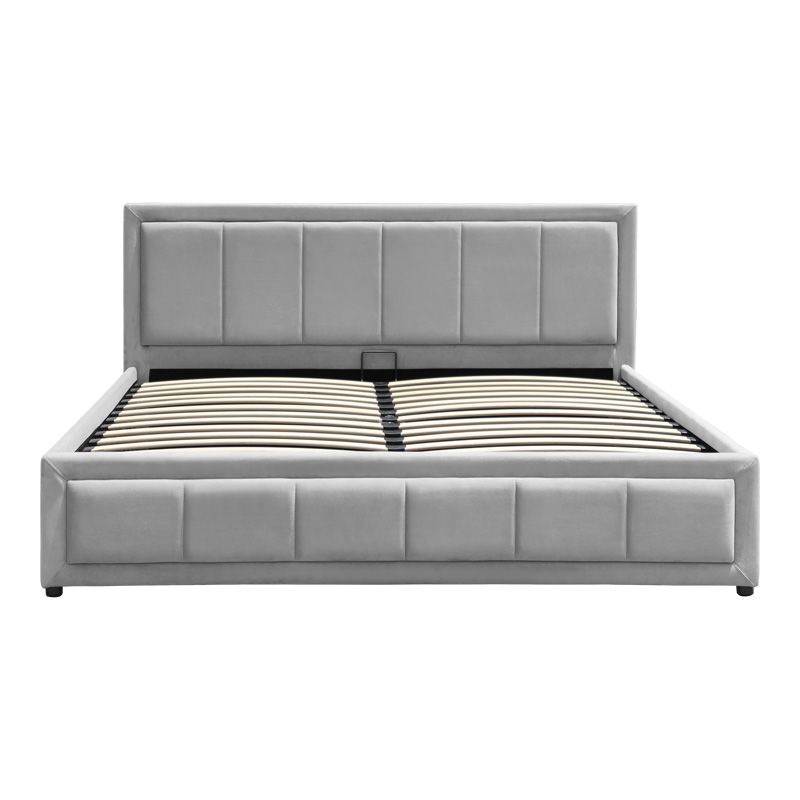 Κρεβάτι Huga pakoworld με αποθηκευτικό χώρο βελούδο γκρι 160x200εκ