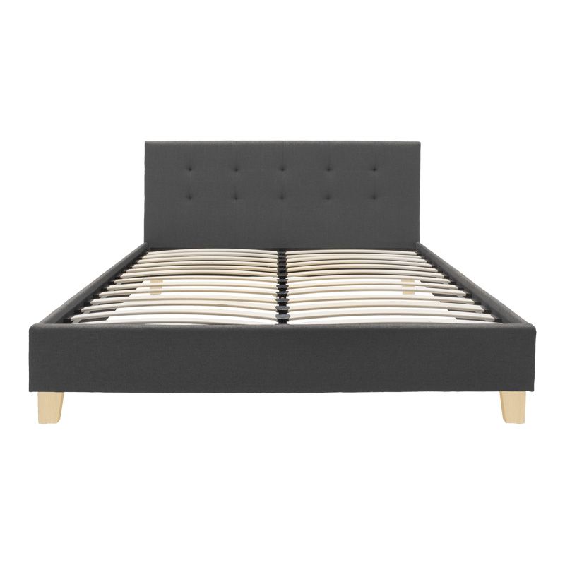 Κρεβάτι Mago pakoworld ύφασμα σε ανθρακί απόχρωση με ξύλινο πόδι 160x200εκ