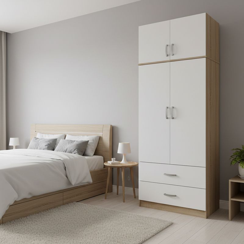 Ντουλάπα δίφυλλη με 2 συρτάρια και πατάρι Lego pakoworld σε oak-λευκή απόχρωση 80x42x240εκ