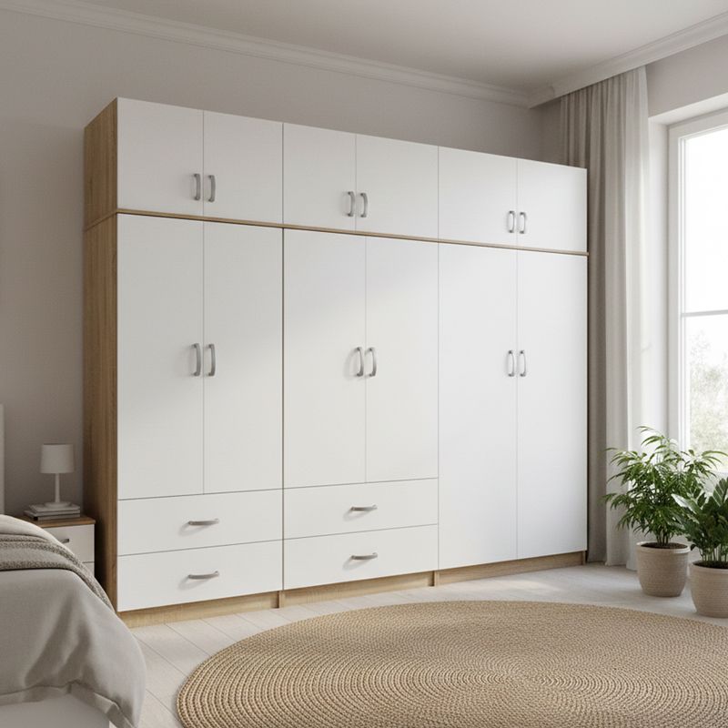 Ντουλάπα εξάφυλλη με πατάρι Lego pakoworld sonoma-λευκή 240x42x240εκ