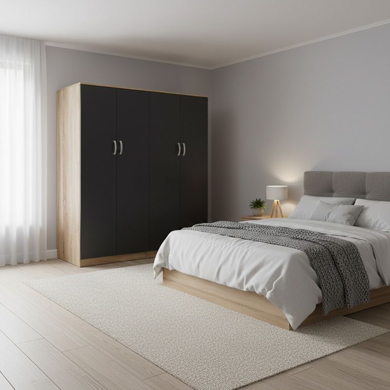 Ντουλάπα τετράφυλλη Lego Ι pakoworld sonoma-ανθρακί 160x42x180εκ