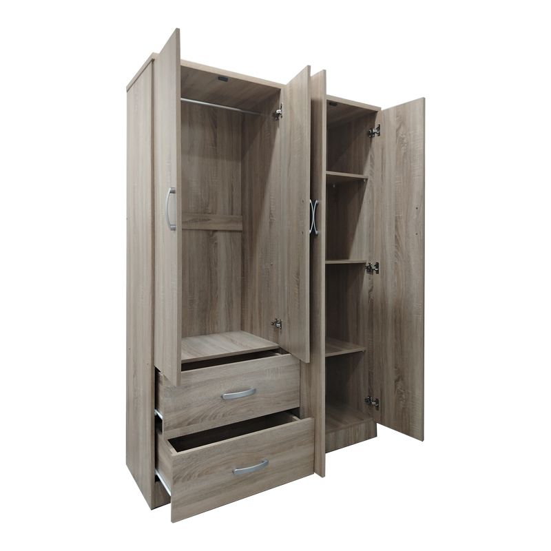Ντουλάπα τετράφυλλη με 2 συρτάρια Lego pakoworld σε oak απόχρωση 120.5x42x181εκ