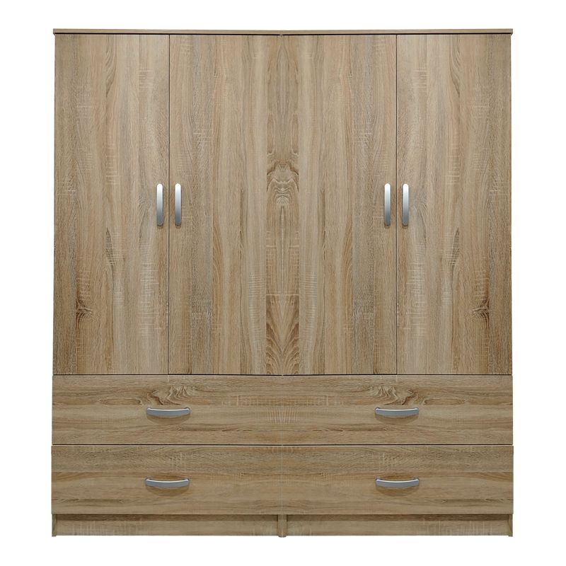 - Περιλαμβάνει τέσσερις πόρτες, εσωτερικά φέρει ράγα για κρεμάστρες ενώ κάτω φέρει τέσσερα μεγάλα συρτάρια για την αποθήκευση ρούχων και αξεσουάρ.