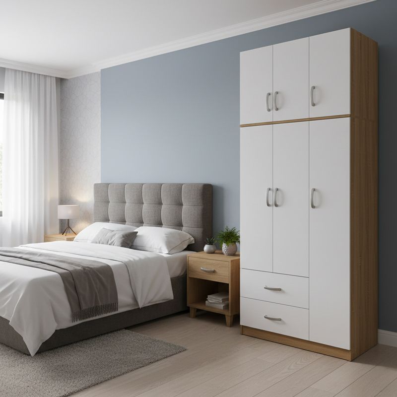 Ντουλάπα τρίφυλλη με 2 συρτάρια και πατάρι Lego pakoworld σε oak-λευκή απόχρωση 90x42x240εκ