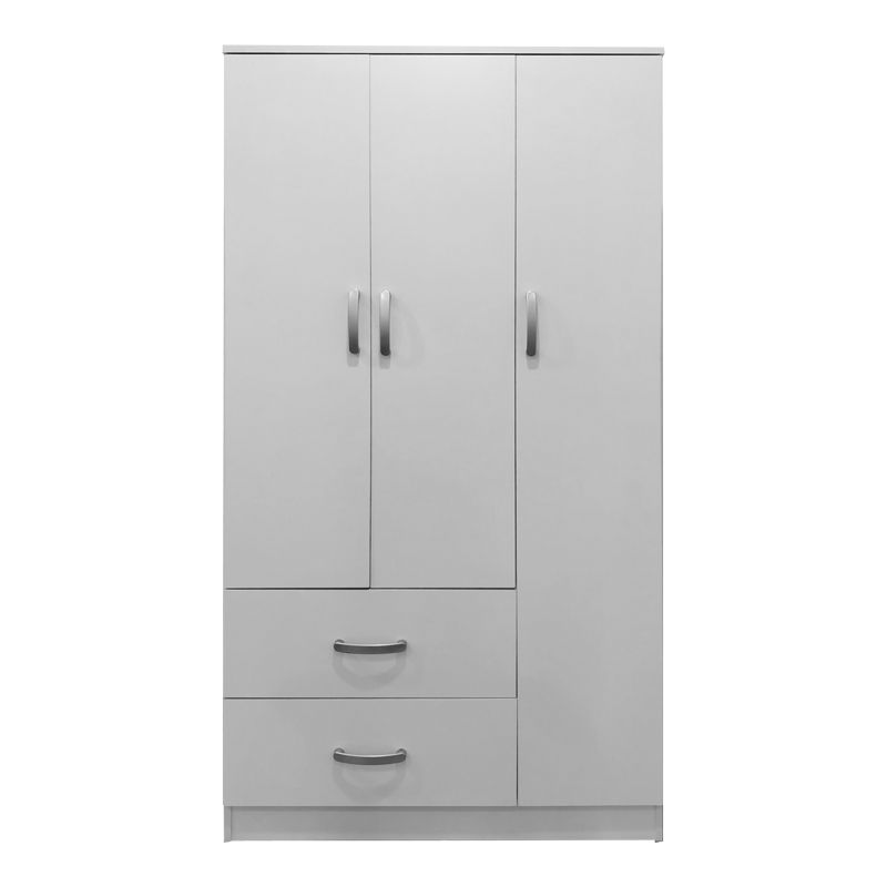 - Περιλαμβάνει τρεις πόρτες, εσωτερικά φέρει ράγα για κρεμάστρες και ράφια ενώ κάτω φέρει δύο μεγάλα συρτάρια για την αποθήκευση ρούχων και αξεσουάρ.