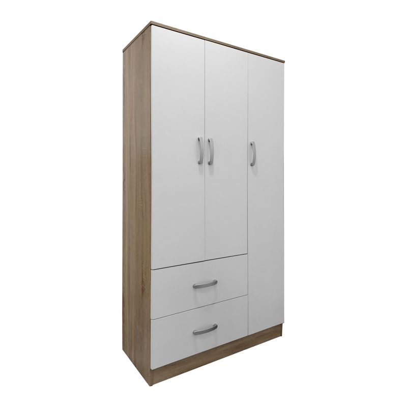 Ντουλάπα τρίφυλλη με 2 συρτάρια Lego pakoworld σε oak-λευκή απόχρωση 90x42x180εκ
