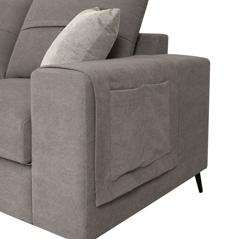 Γωνιακός καναπές δεξιά γωνία Montana pakoworld γκρι ύφασμα με μαξιλάρια σε απόχρωση ανοιχτό γκρι 275x215x93εκ