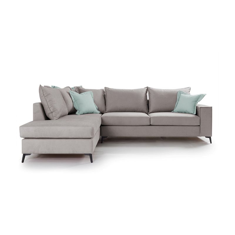 Γωνιακός καναπές δεξιά γωνία Romantic pakoworld ύφασμα elephant-ciel 290x235x95εκ
