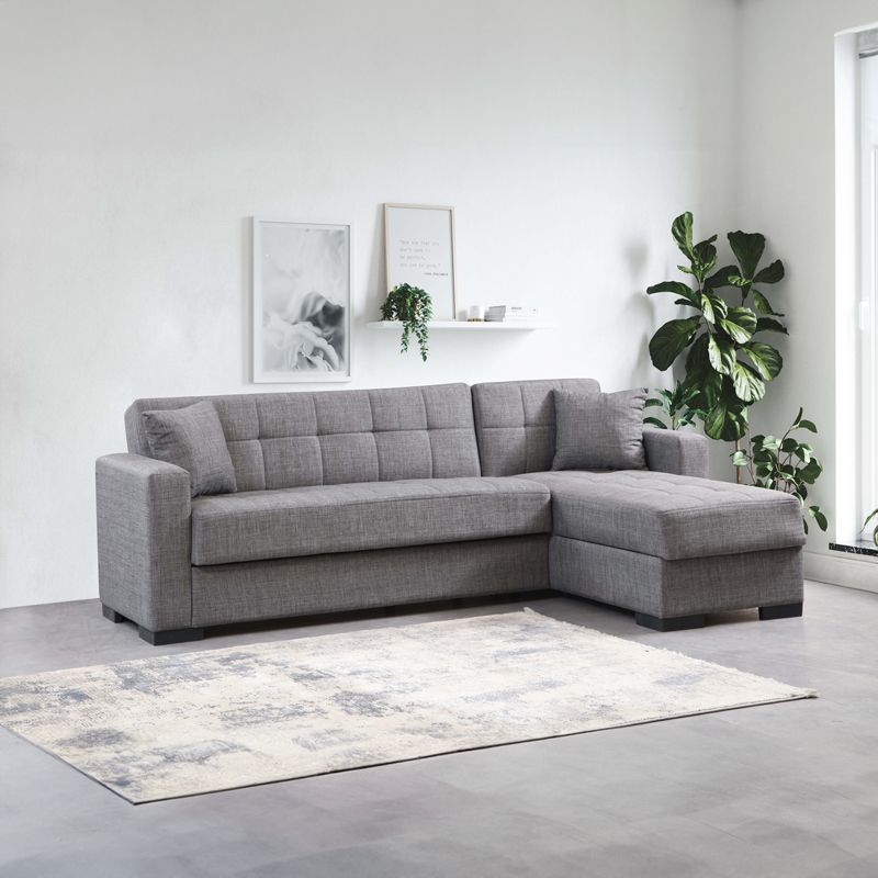 Γωνιακός καναπές-κρεβάτι με αποθηκευτικό χώρο Kansos pakoworld ανθρακί ύφασμα 235x150x80εκ
