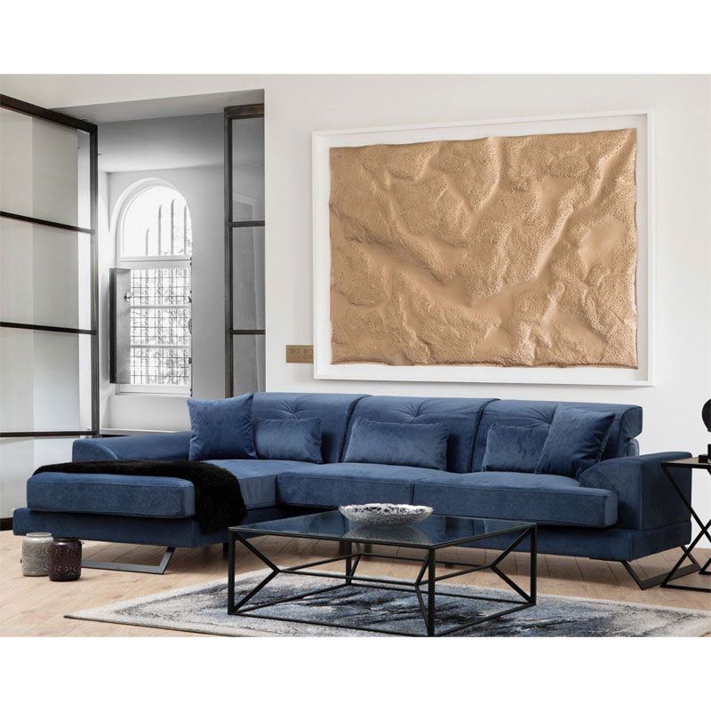 Γωνιακός καναπές PWF-0575 pakoworld δεξιά γωνία ύφασμα μπλε 308/190x92εκ