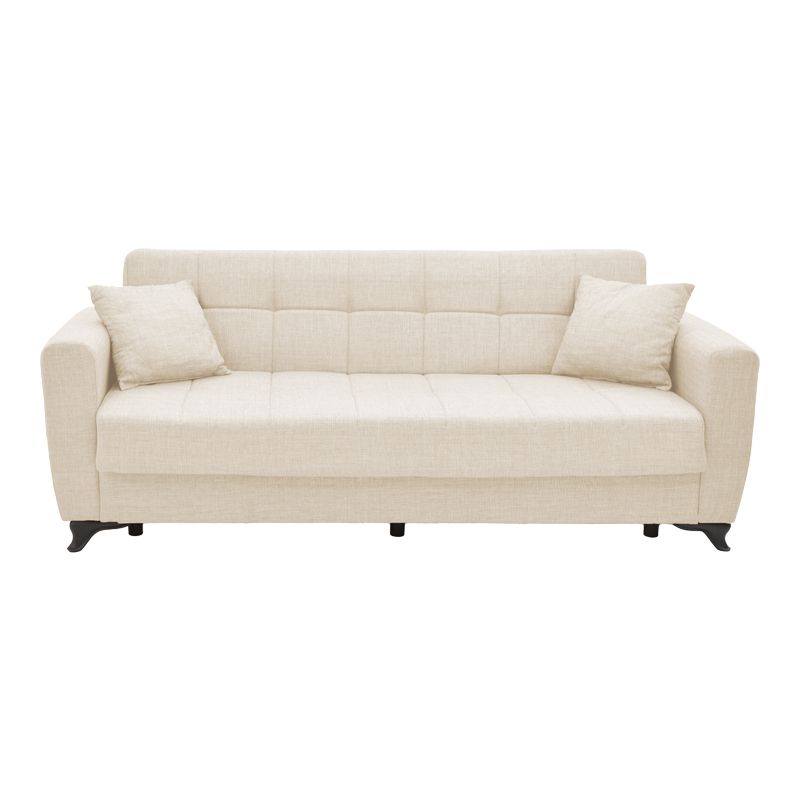 Καναπές-κρεβάτι με αποθηκευτικό χώρο τριθέσιος Modesto pakoworld κρεμ ύφασμα 215x85x80εκ