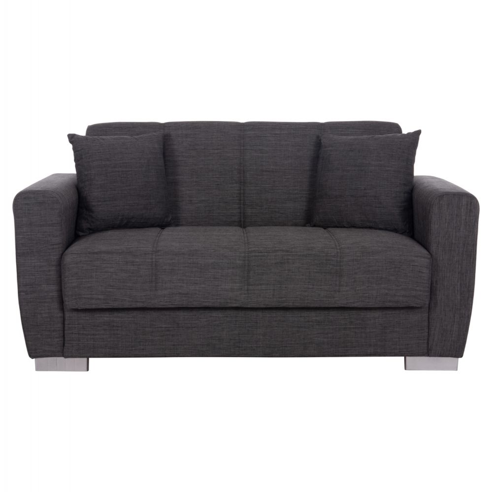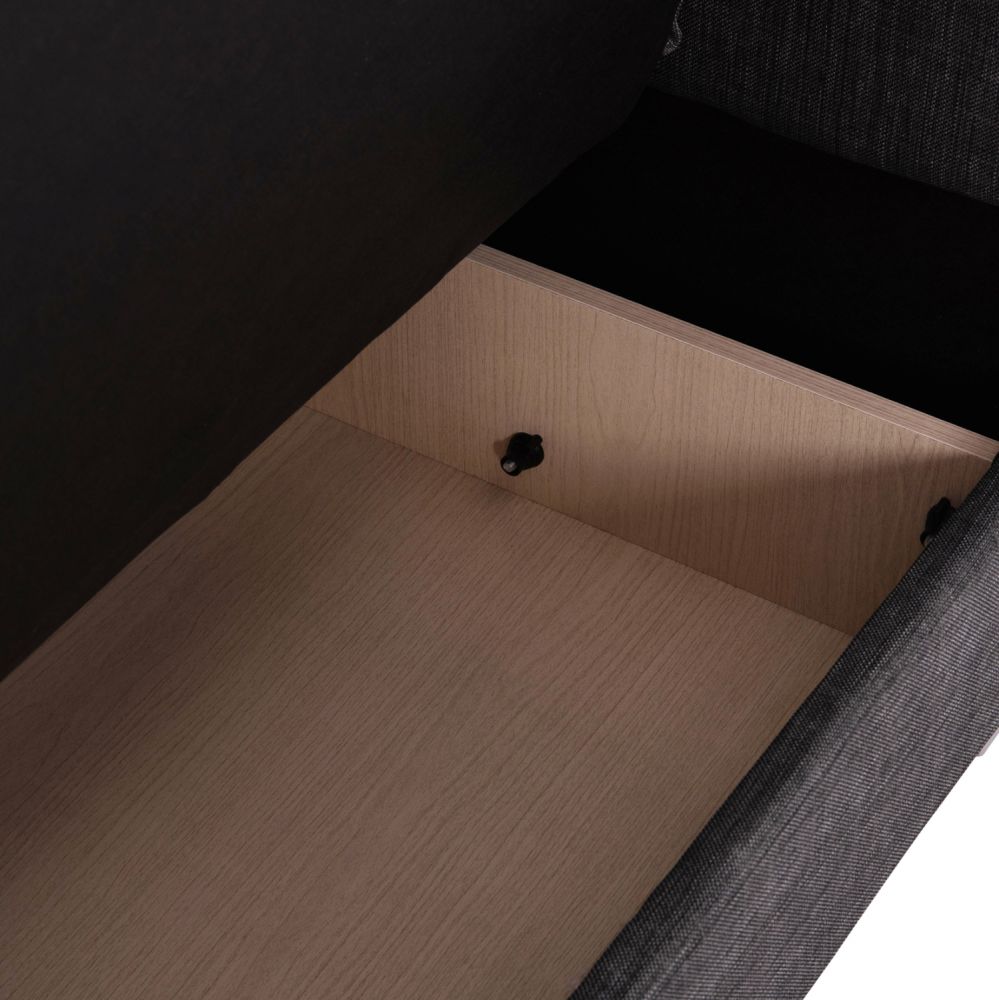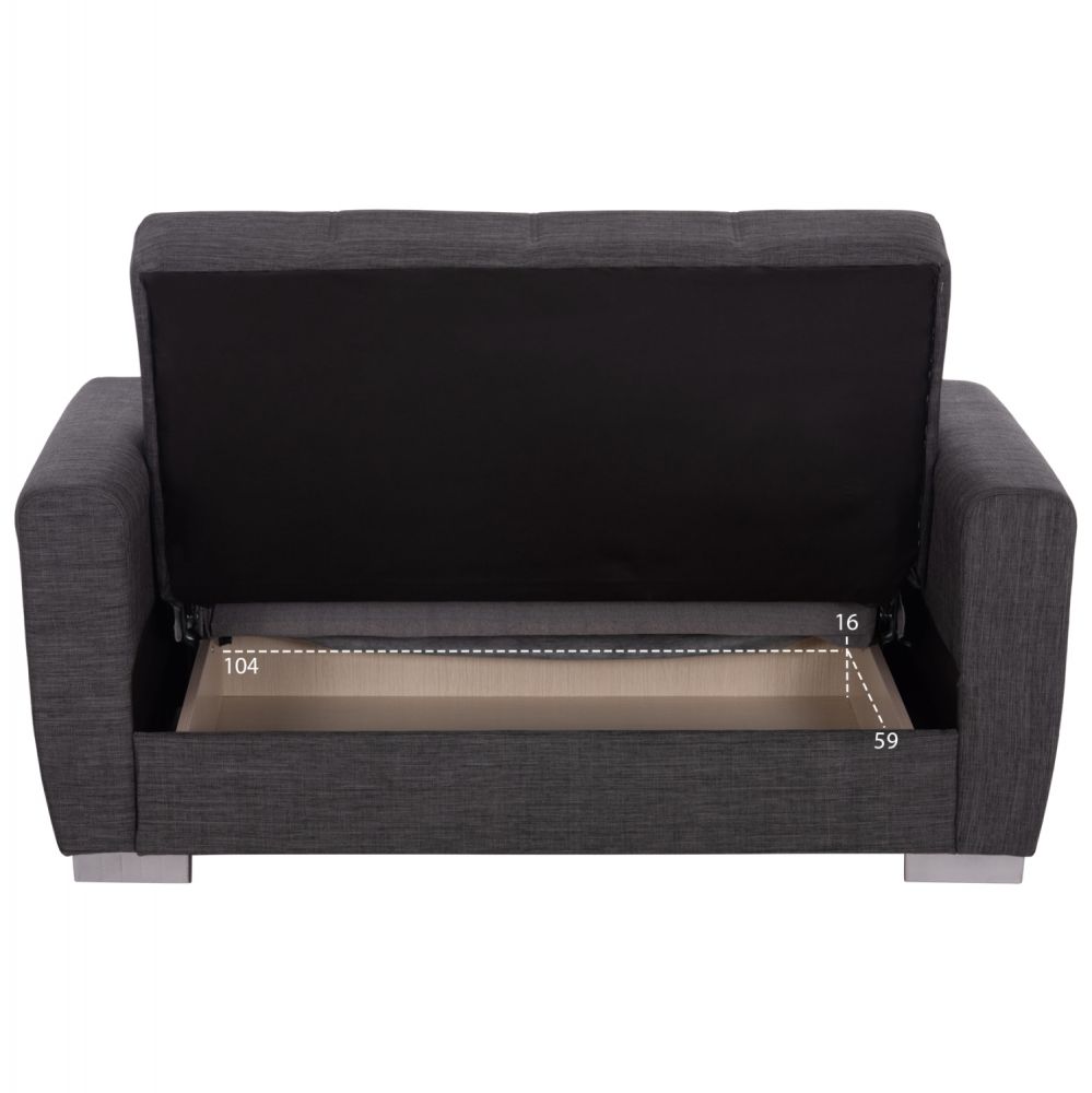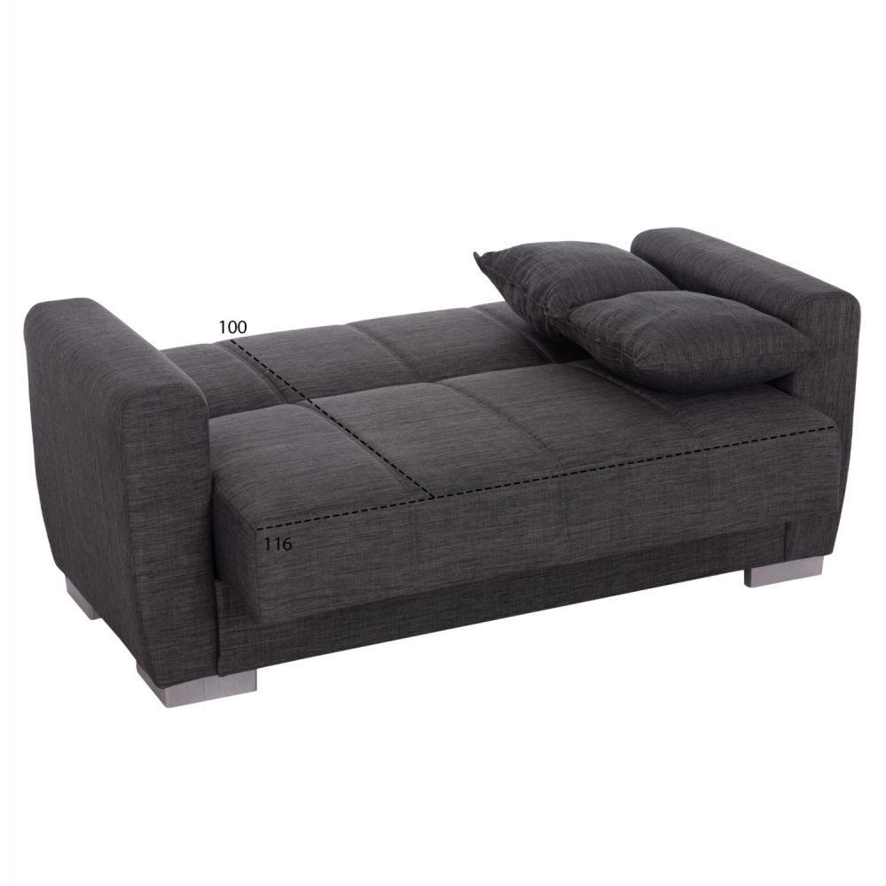 Το κύριο χαρακτηριστικό του καναπέ, όμως, είναι ότι πέφτει η πλάτη και μετατρέπεται σε ένα άνετο κρεβάτι για έκτακτες περιπτώσεις, μέσω ενός εύχρηστου μηχανισμού «κλικ-κλακ». Συνέπεια αυτού, βέβαια, είναι και η ύπαρξη αποθηκευτικού χώρου κάτω από το κάθισμα του καναπέ, ο οποίος πάντα είναι χρήσιμος, ειδικά σε φοιτητικά σπίτια. Τέλος, τα πόδια του καναπέ είναι φαρδιά και χαμηλά δίνοντας στιβαρότητα σε όλη την κατασκευή.