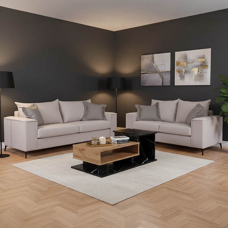 Σετ σαλονιού Verona 2τεμ 2θέσιος-3θέσιος cream - μαξιλάρια mocha