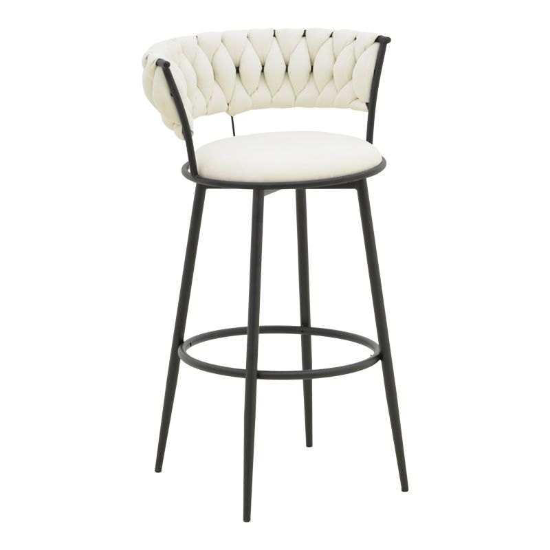Αναβαθμίστε τον χώρο σας με το σκαμπό μπαρ Alkia, έναν συνδυασμό κομψότητας και άνεσης. Η χαρακτηριστική πλέξη στο πίσω μέρος προσθέτει μια ενδιαφέρουσα και οπτική γοητεία, ενώ το άνετο κάθισμα υπόσχεται ευχάριστες στιγμές χαλάρωσης. Στηριγμένο σε λεπτά, αλλά σταθερά μεταλλικά πόδια σε μαύρο ματ φινίρισμα, το σκαμπό μπαρ Alkia διαθέτει επίσης ένα πρακτικό στήριγμα ποδιών για επιπλέον άνεση.