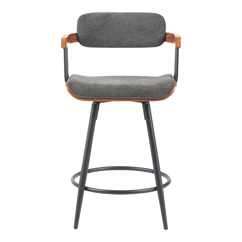 Σκαμπό μπαρ Cameo pakoworld περιστρεφόμενο μέταλλο μαύρο-καρυδί ξύλο-ανθρακί ύφασμα 53x50x93εκ